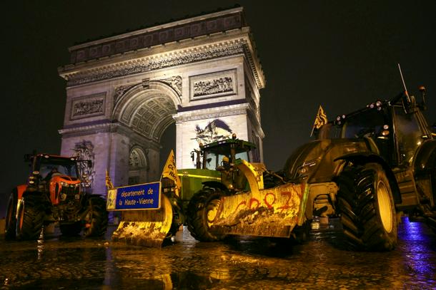 Dozens of tractors arrived before dawn and drove through Paris, with some pausing at the Eiffel Tower and others at the Arc de Triomphe, in a protest organised by the Rural Confederation union.