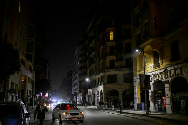 People walk past shops closed early in Cairo under a government-ordered curfew