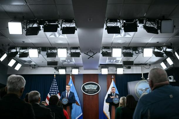 (L/R) US Defense Secretary Pete Hegseth and the Chairman of the Joint Chiefs of Staff General Dan Caine briefed reporters in Washington on the progress in the war