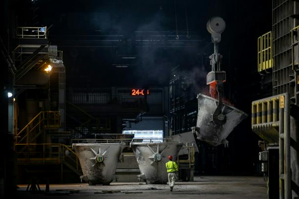 Farther away, at the Glogow smelter, two workers in protective suits, armed with long lances, open huge furnaces where the ore is melted.