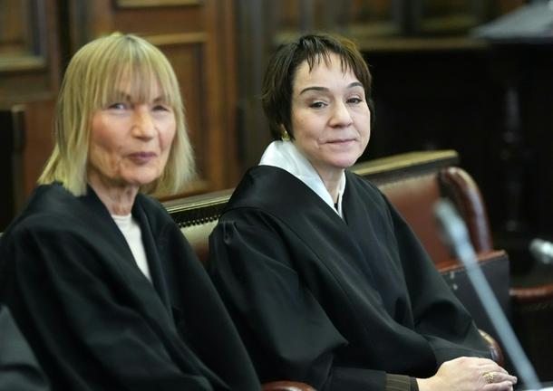 Lawyers Christiane Yueksel (right) and Christiane Berger are representing the defendant in the so-called 'White Tiger' trial in Hamburg
