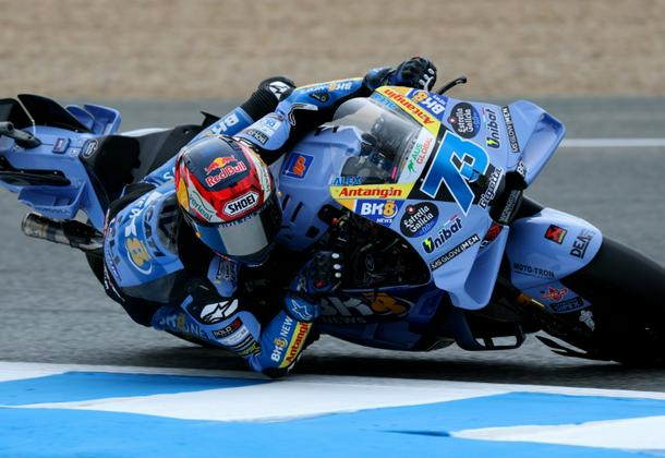 Team Gresini Racing MotoGP's Alex Marquez rides during a practice session at Jerez on Friday