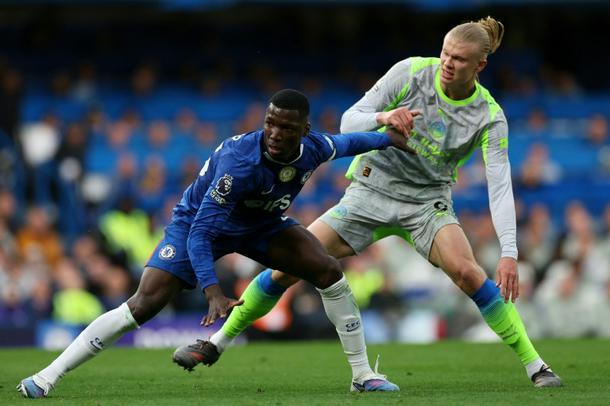Chelsea midfielder Moises Caicedo (L)