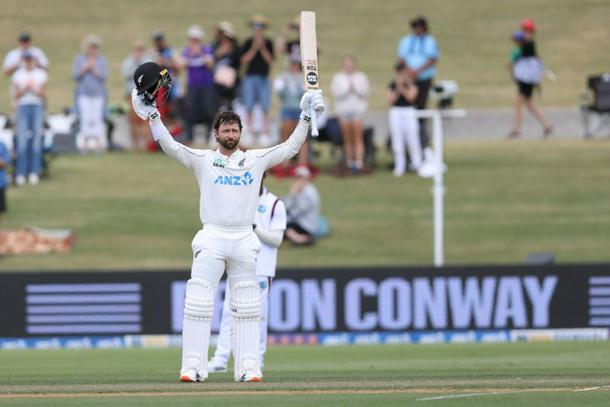 Conway was unbeaten on 224 at lunch with partner Rachin Ravindra on 4.