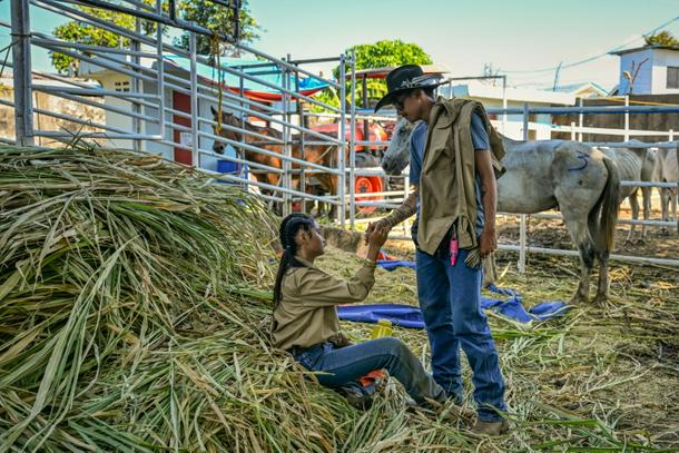 Her father, Clodualdo, a former rodeo champion and animal husbandry expert, watched approvingly.