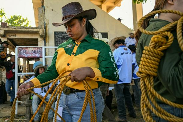 Rizza Matutino preparing to compete in the casting down event during the Rodeo Festival in Masbate