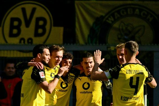 Dortmund lead after just eight minutes as Bensebaini lofted a long pass over the midfield to an onrushing Beier, who collected the ball before guiding a shot across the face of goal.