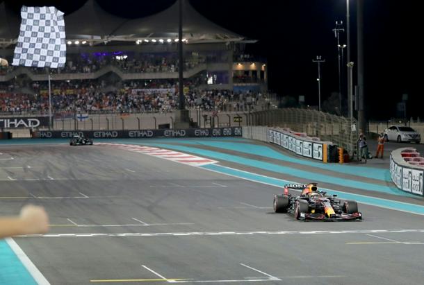 Max Verstappen takes the chequered flag and the title after flooring Lewis Hamilton on the last lap