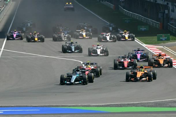 The Ferrari of Hamilton earlier had a brilliant launch off the start line, moving from fourth to second and then swapping the lead with Russell twice on the opening lap.