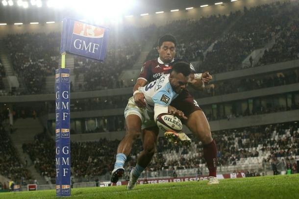 Sireli Maqala scores against Salesi Rayasi and Bordeaux-Begles last month