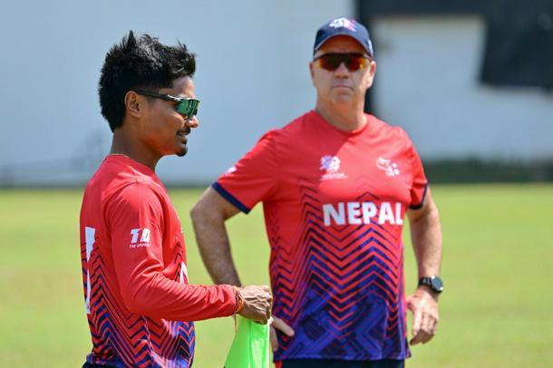 Nepal captain Rohit Paudel (left) and coach Stuart Law at a practice session in Colombo