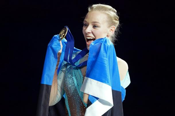 Estonia's Niina Petrokina won the women's figure skating title at the European championships by a wide margin