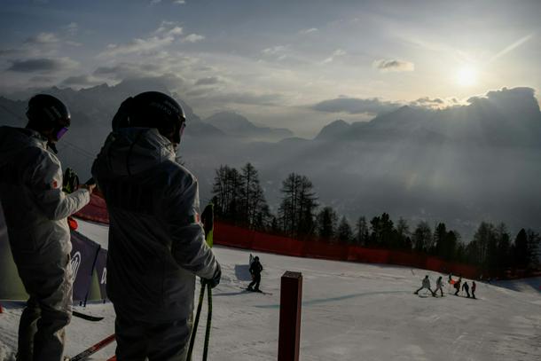 Athletes inspect the slope ahead of the alpine skiing at the Milano Cortina 2026 Paralympic Winter Games in Cortina d’Ampezzo