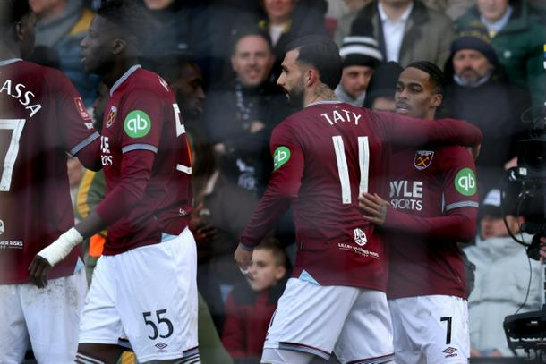 West Ham’s Freddie Potts was sent off soon after Summerville’s strike in the first period of extra-time, but the Premier League strugglers held on to survive a gruelling fourth round clash.