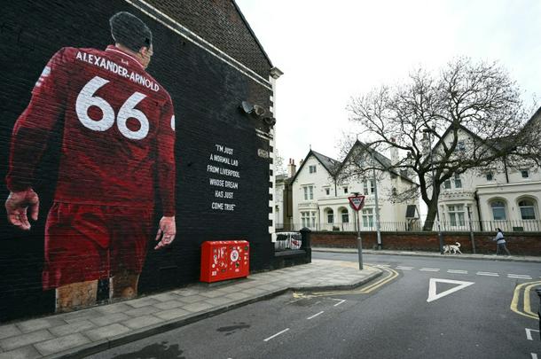 A mural of Trent Alexander-Arnold outside Liverpool's Anfield ground