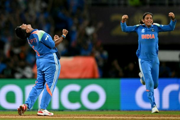 Sharma took down Nadine de Klerk, for 18, as the final wicket as Harmanpreet Kaur’s India celebrated with the jubilant crowd inside the ground and millions outside in the cricket-mad nation.