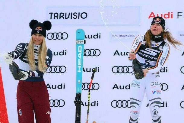 Tarvisio (Italy) (AFP) - Lindsey Vonn continued her remarkable form in the lead up to the Winter Olympics with her seventh World Cup podium of the season in Sunday’s super-G in Tarvisio won by Emma Aicher.