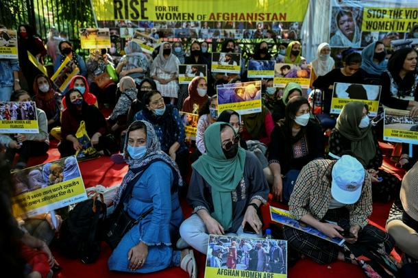 A protest for Afghan women's rights in New Delhi in 2021, the year the Taliban returned to power