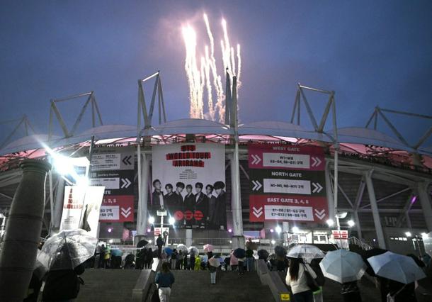 Goyang (South Korea) (AFP) - Tens of thousands of fans filled a rainswept stadium in South Korea on Thursday to watch BTS kick off their world tour, as the K-pop megastars ride the momentum of a chart-topping comeback album and a landmark performance in the heart of Seoul.