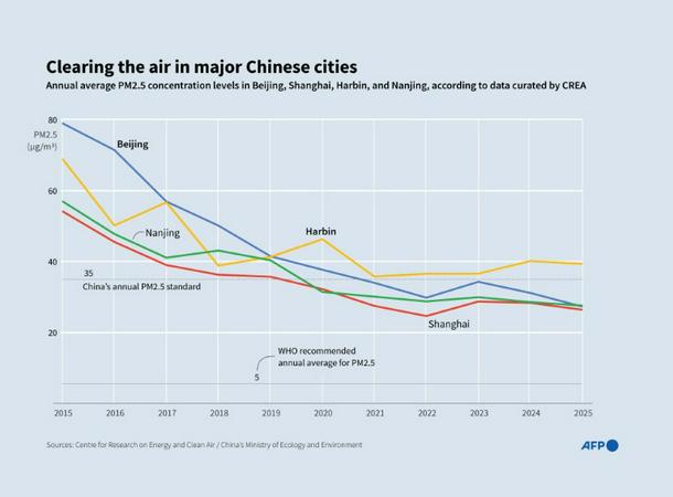 Official 2025 data found nationwide average PM2.5 concentrations decreased 4.4 percent on-year.