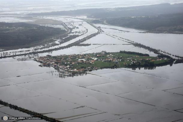 In Alcacer do Sal, south of Lisbon, the Sado river burst its banks and flooded the town centre
