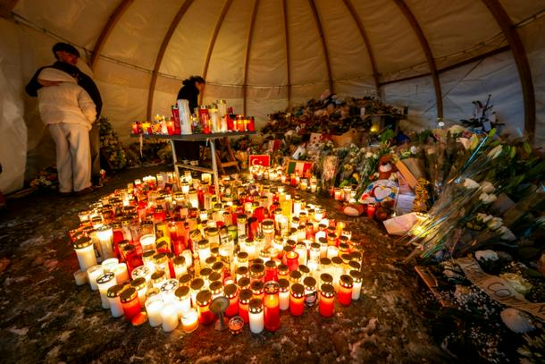 Close to the scene of the disaster at Le Constellation, a bar in the ski resort of Crans-Montana, people gathered in silence in the falling snow.