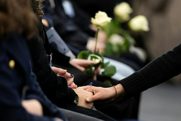 Attendees at the ceremony in Martigny held white roses in memory of the victims of the Crans-Montana fire tragedy