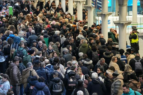 Crowds of stranded travellers, many with suitcases, swelled at London’s St Pancras International station and at the Gare du Nord in Paris as they were notified that their end-of-year holiday plans were being thrown into doubt.