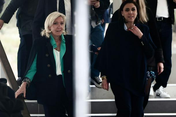 RN candidate Laure Lavalette (right) -- here with three-time presidential candidate Marine Le Pen (left) -- is hoping to win in Toulon