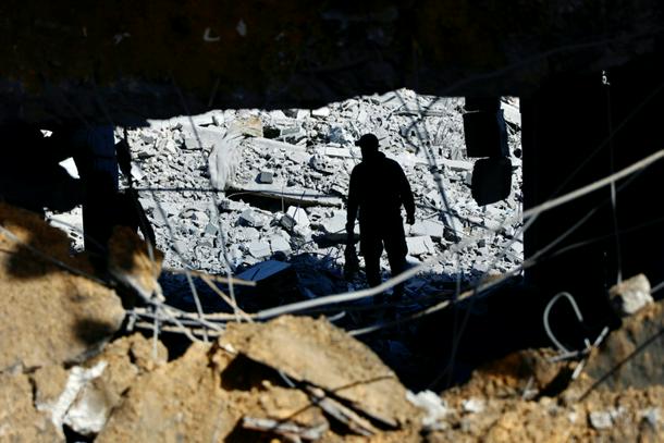 The ruined Sheikh Radwan police station in Gaza City following the Israeli strike