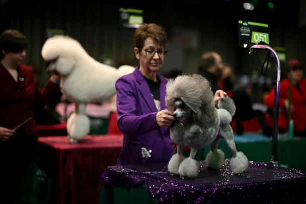 A poodle being groomed at Crufts