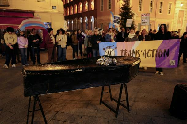 People take part in a gathering to celebrate Transgender Day of Remembrance in Nice, France, on November 19, 2025