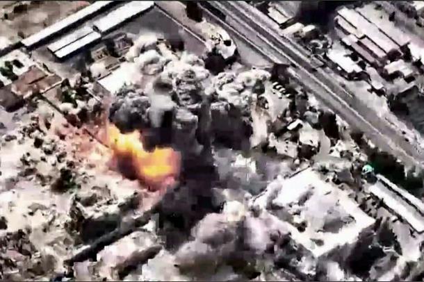 A video grab image taken from footage released by the Israeli military on March 1, 2026, shows what it says are large-scale strikes on "the headquarters of the Iranian terror regime" in Tehran on March 1
