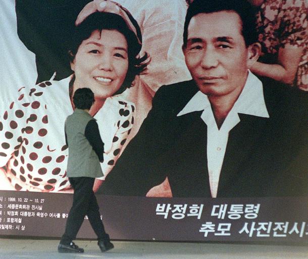 A picture of former South Korean president Park Chung-Hee and his wife is displayed in Seoul at a photo exhibit on the dictator's 1979 assassination