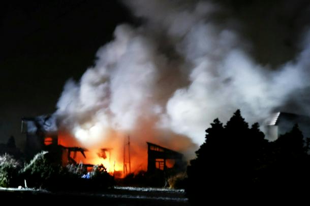 The scene of a fire that broke out after an earthquake in Aomori City, Japan
