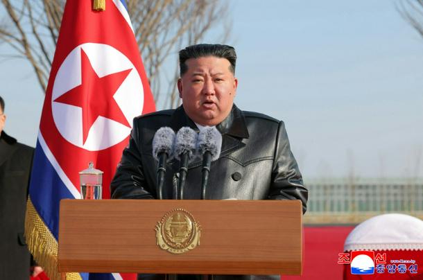 This picture taken on February 1, 2026 and released by North Korea's KCNA shows North Korean leader Kim Jong Un delivering a speech in North Pyongan Province