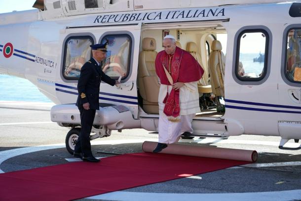 Prince Albert II and Princess Charlene received the pontiff at Monaco's heliport
