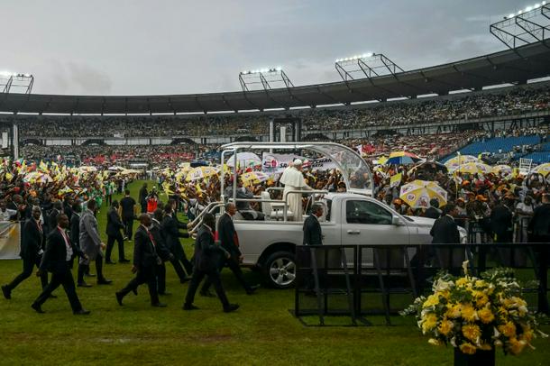 The pope arrived on Tuesday after stops in Algeria, Cameroon and Angola.