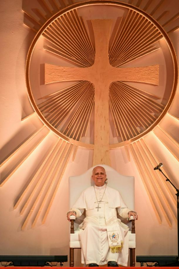 Pope Leo was welcomed at the Mongomo basilica in a supercharged atmosphere, with fireworks and a release of balloons celebrating his arrival, plus a tour through cheering crowds in the popemobile.