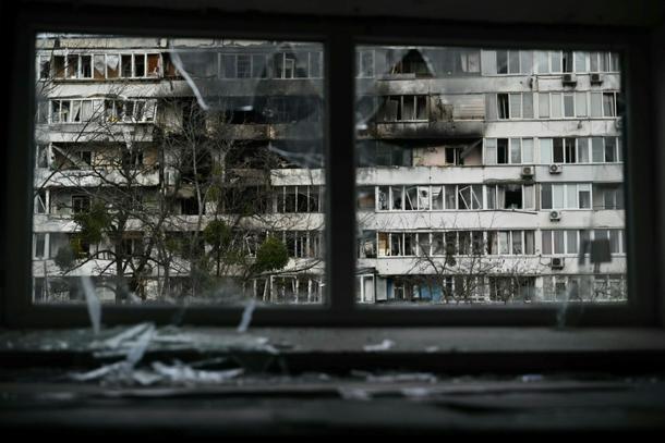 Damaged residential buildings can be seen in Kyiv on November 25, after a fresh overnight bombardment by Russia