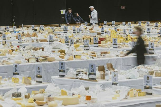 Laid out on seemingly endless tables draped in white tablecloths, 5,244 cheeses were tasted by an international jury of 265 experts made up of cheesemakers, chefs, buyers, sellers and journalists from more than 40 countries, recognisable by their yellow aprons.