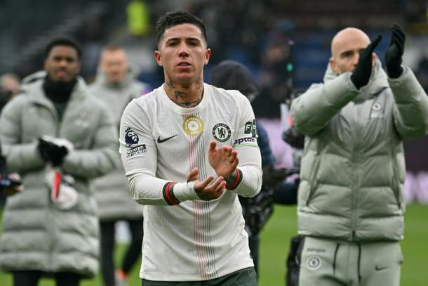 Chelsea midfielder Enzo Fernandez (C) scored in the win at Burnley