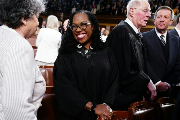 US Supreme Court Justice Ketanji Brown Jackson (C) is one of many women of color who have faced disparaging insults from President Donald Trump