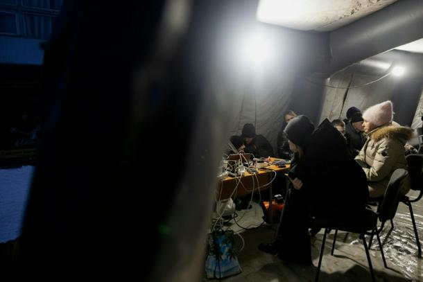 Authorities in Vyshgorod set up so-called “resilience centres” during the blackout, where residents could charge their phones.