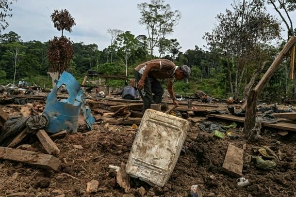 Farmer Jose Pena looks for belongings amid rubble after a bomb dropped by the Ecuadoran army in the Lago Agrio region of Ecuador on the border with Colombia