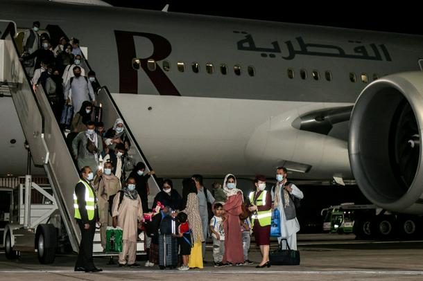 After the US withdrawal in 2021, evacuees from Afghanistan fled to escape the Taliban, seen here landing at Hamad International Airport in Qatar's capital Doha from Kabul