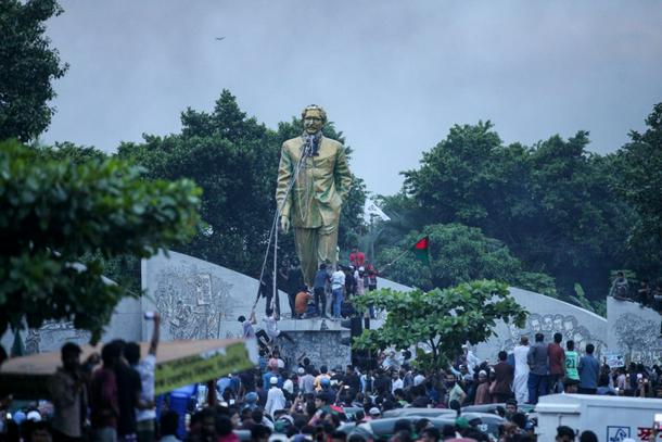 Anti-government protesters vandalised a statue of Sheikh Mujibur Rahman, Bangladesh's founding father and the father of ousted Prime Minister Sheikh Hasina, when she fell from power in August 2024