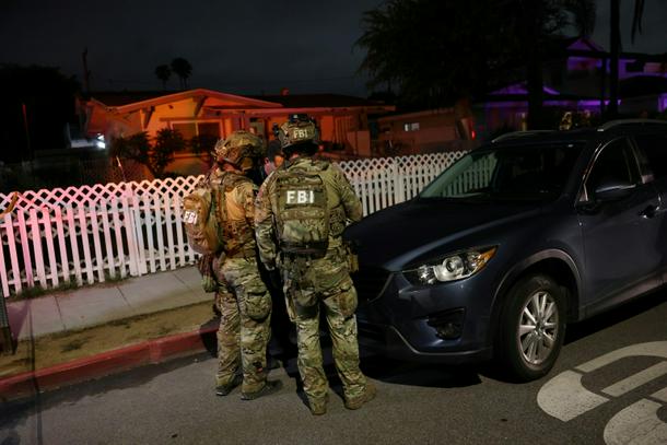 FBI agents were seen outside a two-story residence in Torrance late Saturday, according to an AFP photographer.