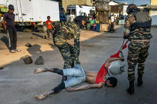 A man was left unconscious on the ground after being chased and severely beaten by security forces in the neighbouring district of Anosibe before being evacuated by the Red Cross.