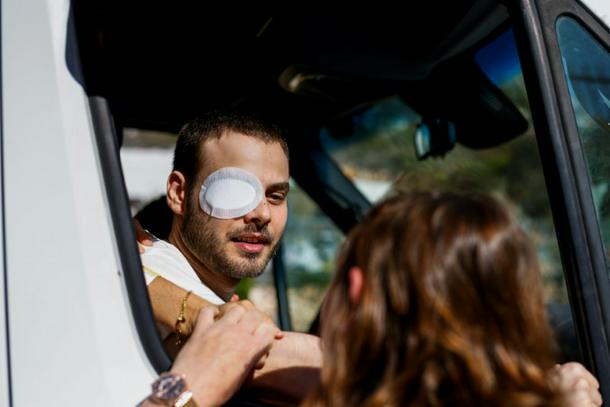 Alon Ohel, a hostage released by Hamas, greets his cheering neighbours as he arrives at his home in Karmiel, northern Israel